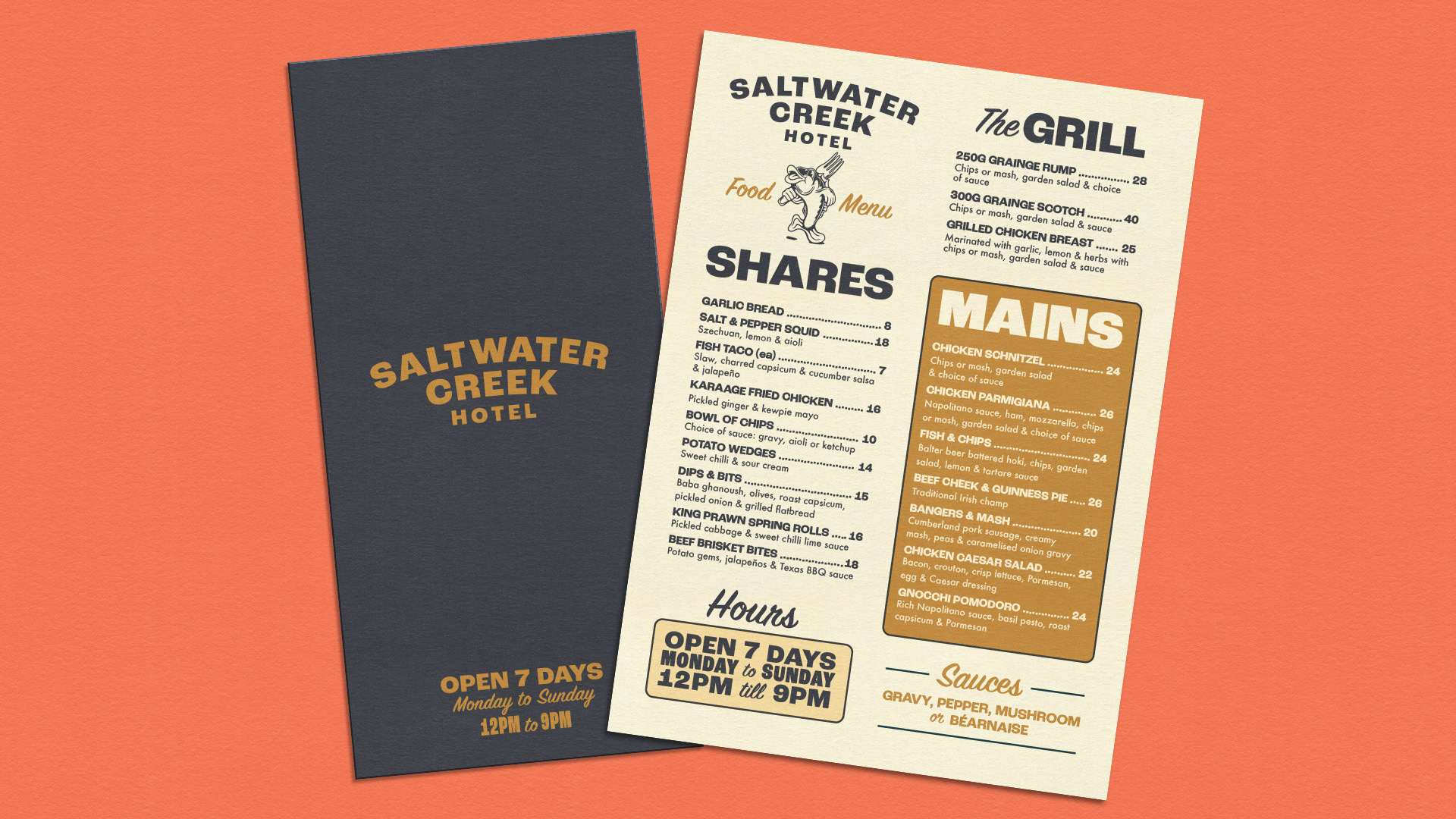 A recent rebrand for The Saltwater Creek Hotel in Helensvale, QLD. The brief was to create a warm, inviting and fun venue identity that channels the hotel’s masculine energy while still appealing to a broad demographic.